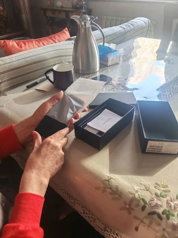 记者采访时,卢大爷才打开手机塑封膜