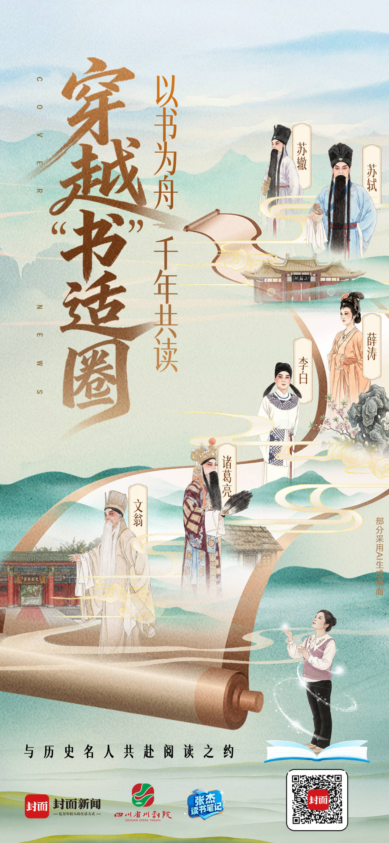 以此为契机,封面新闻携手四川省川剧院,倾力打造沉浸式创意情景短剧——《书舟寻蜀——与六位历史名人跨时空“共读”》。